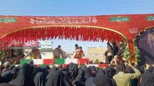 در طول مسیر تشییع، نوای صلوات، ذکر مصیبت و مداحی طنینانداز بود. تابوتها با پرچمهای سهرنگ ایران و گلهای سفید و سرخ، بر دوش مردم حرکت میکردند. برخی مادران با چشمانی اشکبار، زیر لب زمزمه میکردند: «خوش آمدید پسران وطن». کودکان با گلهای کوچک در دست کنار پدر و مادر خود بودند و نگاهشان پر از پرسش و احترام بود.